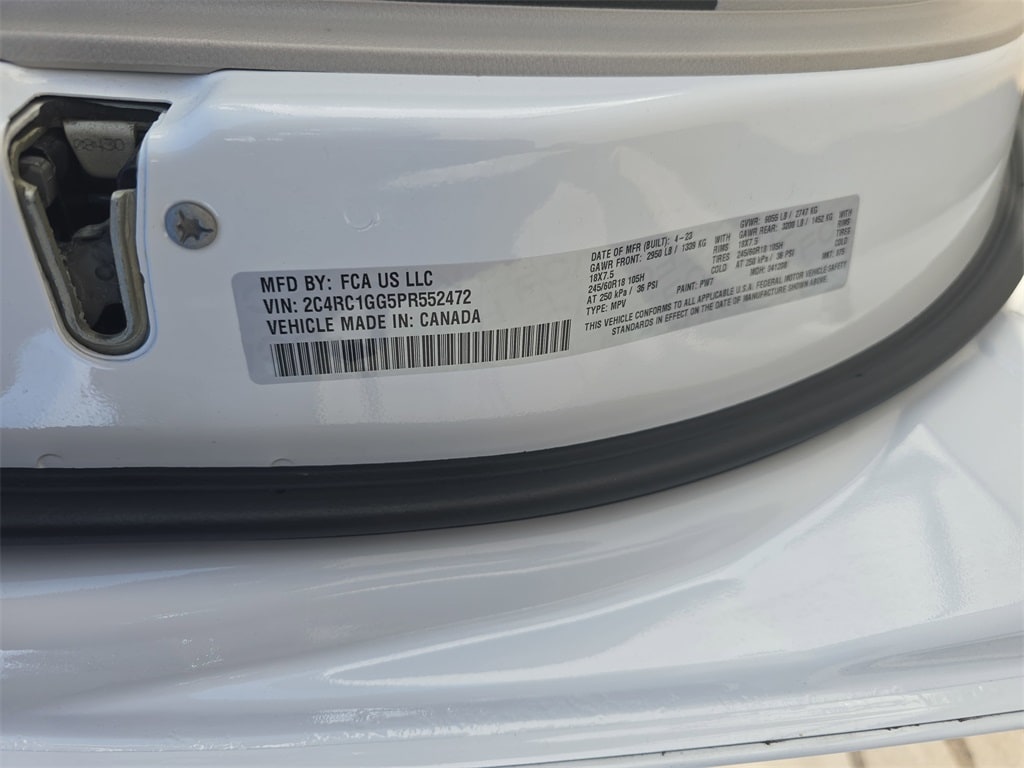 CARFAX One-Owner. Clean CARFAX. 2023 Chrysler Pacifica Limited WAGON Bright White Clearcoat FWD 9-Speed 948TE Automatic 3.6L V6 24V VVT Pacifica Limited WAGON, 4D Passenger Van, 3.6L V6 24V VVT, 9-Speed 948TE Automatic, FWD, Bright White Clearcoat, Black/Alloy/Black w/Nappa Leather Bucket Seats, 3rd row seats: split-bench, 4-Wheel Disc Brakes, ABS brakes, Air Conditioning, Alloy wheels, Apple CarPlay/Android Auto, Emergency communication system: SiriusXM Guardian, Front Bucket Seats, Front fog lights, Heated front seats, Heated rear seats, Memory seat, Navigation System, Panic alarm, ParkView Rear Back-Up Camera, Power driver seat, Power Liftgate, Power moonroof, Power passenger seat, Power windows, Quick Order Package 27P, Radio: Uconnect 5 Nav w/10.1" Display, Rear air conditioning, Reclining 3rd row seat, Remote keyless entry, Security system, Split folding rear seat, Steering wheel mounted audio controls, Telescoping steering wheel, Tilt steering wheel, Ventilated front seats, Wheels: 18" x 7.5" Painted Aluminum Design 2.