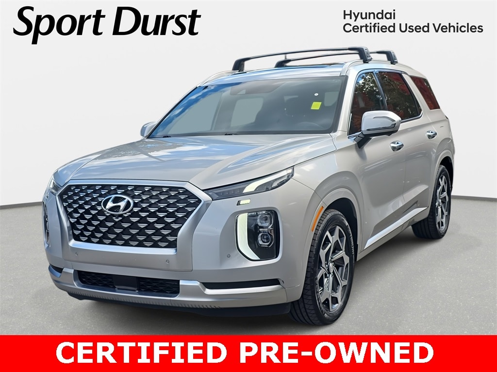 2022 Hyundai Palisade Calligraphy AWD Typhoon Silver AWD 8-Speed Automatic with SHIFTRONIC V6 *LOCAL TRADE*, *REMAINDER OF FACTORY WARRANTY*, *INCLUDES WARRANTY*, *CLEAN HISTORY...NO ACCIDENTS REPORTED*, *ONE OWNER...NO ACCIDENTS REPORTED*, *ONE OWNER*, *BOUGHT HERE NEW*, *BACKUP CAMERA*, *BLUETOOTH*, *NAVIGATION*, *SUNROOF*, *THIRD ROW SEATS*, *APPLE CARPLAY/ANDROID AUTO*, *ALUMINUM ALLOY WHEELS*, *LEATHER*, *HEATED SEATS*, *POWER PACKAGE*, Palisade Calligraphy AWD, 4D Sport Utility, V6, 8-Speed Automatic with SHIFTRONIC, AWD, Typhoon Silver, Black w/Premium Nappa Leather Seat Trim, 3rd row seats: split-bench, 4-Wheel Disc Brakes, ABS brakes, Air Conditioning, Alloy wheels, Apple CarPlay & Android Auto, Bumper Applique, Front Bucket Seats, harman/kardon® Speakers, Heads-Up Display, Heated front seats, Heated rear seats, Navigation System, Option Group 01, Panic alarm, Power driver seat, Power Liftgate, Power moonroof, Power passenger seat, Power windows, Premium Nappa Leather Seat Trim, Reclining 3rd row seat, Remote keyless entry, Security system, Split folding rear seat, Steering wheel mounted audio controls, Telescoping steering wheel, Tilt steering wheel, Ventilated front seats, Ventilated rear seats, Wheels: 20" x 7.5J Calligraphy Exclusive Alloy.