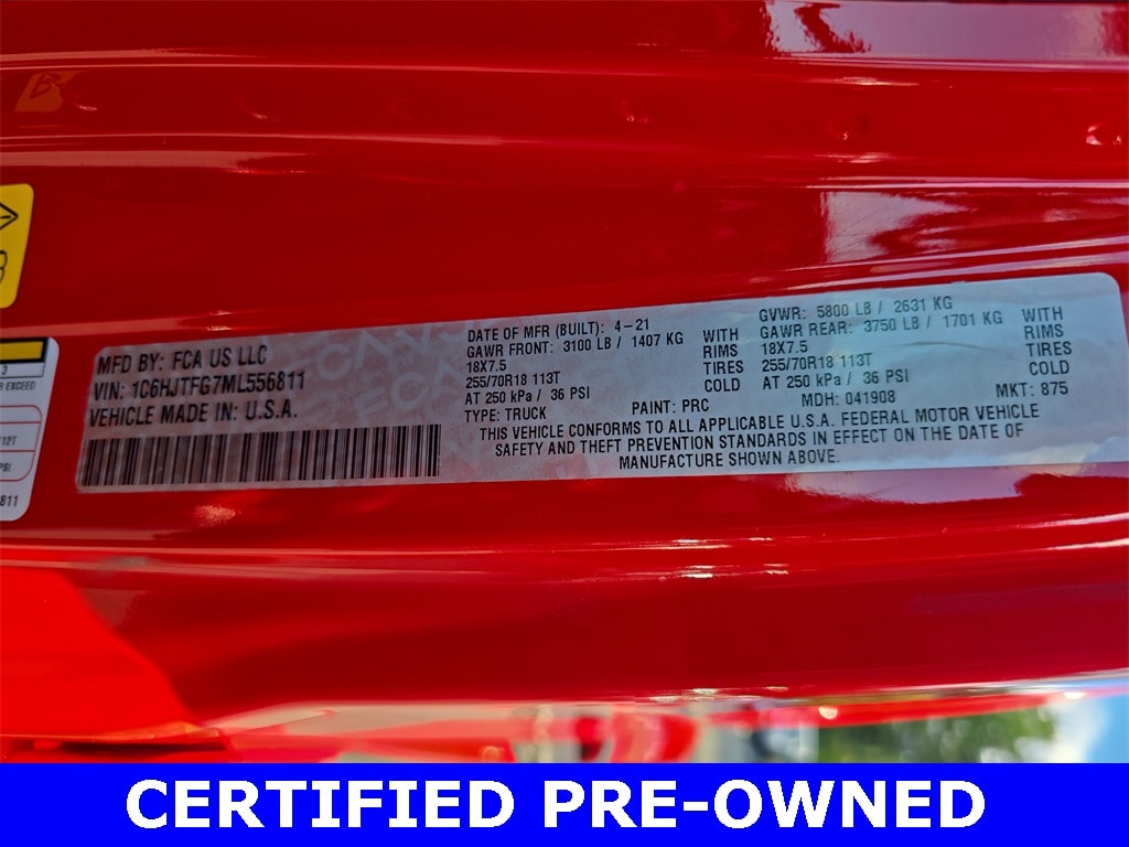 CARFAX One-Owner. Clean CARFAX. 2021 Jeep Gladiator Overland 4WD Firecracker Red Clearcoat 4WD 8-Speed Automatic 3.6L V6 24V VVT *REMAINDER OF FACTORY WARRANTY*, *INCLUDES WARRANTY*, *CLEAN HISTORY...NO ACCIDENTS REPORTED*, *ONE OWNER...NO ACCIDENTS REPORTED*, *ONE OWNER*, *BACKUP CAMERA*, *BLUETOOTH*, *NAVIGATION*, *APPLE CARPLAY/ANDROID AUTO*, *ALUMINUM ALLOY WHEELS*, *LEATHER*, *HEATED SEATS*, *POWER PACKAGE*, Gladiator Overland 4WD, 4D Crew Cab, 3.6L V6 24V VVT, 8-Speed Automatic, 4WD, Firecracker Red Clearcoat, Dark Saddle/Black w/Leather Trimmed Bucket Seats, 240 Amp Alternator, 4-Wheel Disc Brakes, 700 Amp Maintenance Free Battery, 8.4" Radio & Premium Audio Group, 8.4" Touchscreen Display, ABS brakes, Advanced Brake Assist, Advanced Safety Group, Air Conditioning, Alloy wheels, Alpine Premium Audio System, Apple CarPlay/Android Auto, Auto High Beam Headlamp Control, Auto-Dimming Rear-View Mirror, Auxiliary Switch Group, Auxiliary Switches, Black 3-Piece Hard Top, Blind Spot & Cross Path Detection, Body Color 3-Piece Hard Top, Class IV Hitch Receiver, Emergency/Assistance Call, For Details, Visit DriveUconnect.com, Freedom Panel Storage Bag, Front Bucket Seats, Front fog lights, Full Speed Forward Collision Warning Plus, GPS Navigation, HD Radio, Leather steering wheel, Leather Trimmed Bucket Seats, Leather Wrapped Park Brake Handle, Leather Wrapped Shift Knob, Mopar Black Tubular Side Steps, No Soft Top, Off-Road Info Pages, Overland Cloth Bucket Seats, Panic alarm, ParkSense Rear Park Assist System, ParkView Rear Back-Up Camera, Popular Equipment Package, Power windows, Quick Order Package 24G, Radio: Uconnect 4C Nav w/8.4" Display, Rear Armrest w/Cupholder Seat, Rear Sliding Window, Rear Window Defroster, Remote keyless entry, Safety Group, Security system, SiriusXM Traffic Plus, SiriusXM Travel Link, Speed control, Split folding rear seat, Steering wheel mounted audio controls, Telescoping steering wheel, Tilt steering wheel, Traction control, Trailer Tow Package, Wheels: 18" x 7.5" Granite Crystal Aluminum.