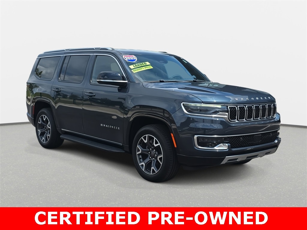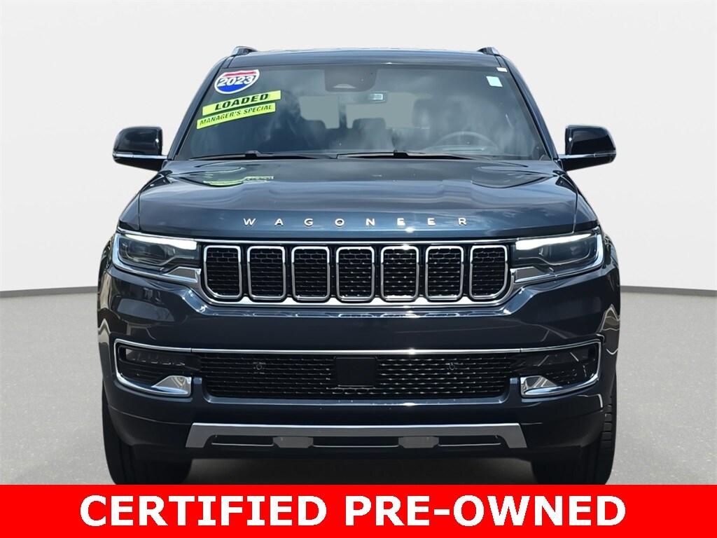 CARFAX One-Owner. 2023 Jeep Wagoneer Series III RWD River Rock RWD 8-Speed Automatic 3.0L I6 *LOCAL TRADE*, *REMAINDER OF FACTORY WARRANTY*, *INCLUDES WARRANTY*, *CLEAN HISTORY...NO ACCIDENTS REPORTED*, *ONE OWNER...NO ACCIDENTS REPORTED*, *ONE OWNER*, *BOUGHT HERE NEW*, *BACKUP CAMERA*, *BLUETOOTH*, *NAVIGATION*, *APPLE CARPLAY/ANDROID AUTO*, *ALUMINUM ALLOY WHEELS*, *POWER PACKAGE*, Wagoneer Series III RWD, 4D Sport Utility, 3.0L I6, 8-Speed Automatic, RWD, River Rock, Global Black w/Leather Trimmed Bucket Seats, 20" x 9.0" Aluminum Wheels, 3rd row seats: bench, 4-Wheel Disc Brakes, 60/40 Power Recline 3rd Row Seat, ABS brakes, Air Conditioning, Alloy wheels, Emergency communication system: Automatic SOS Call, Exterior Parking Camera Rear, Front Bucket Seats, Heads-Up Display, Heated front seats, Heated rear seats, Leather Trimmed Bucket Seats, Memory seat, Navigation System, Pedal memory, Power driver seat, Power Liftgate, Power windows, Preferred Equipment Group, Quick Order Package 25N, Reclining 3rd row seat, Remote keyless entry, Split folding rear seat, Steering wheel memory, Steering wheel mounted audio controls, Traction control, Ventilated front seats.