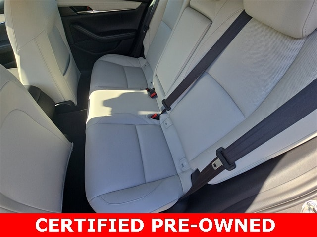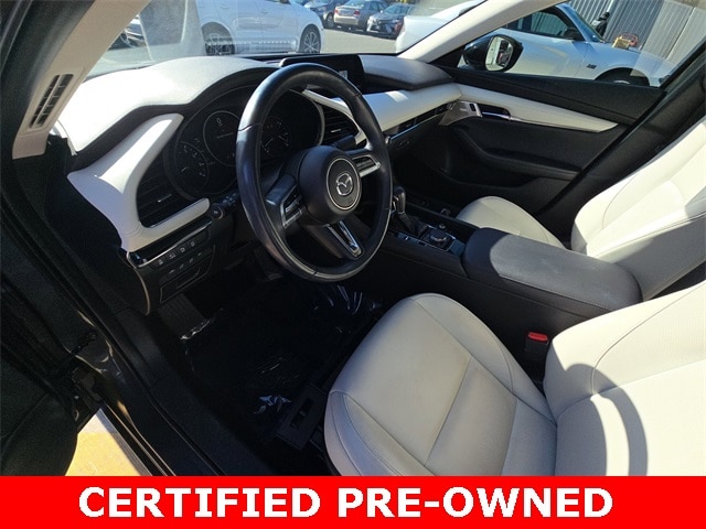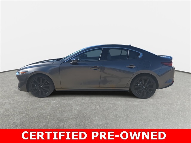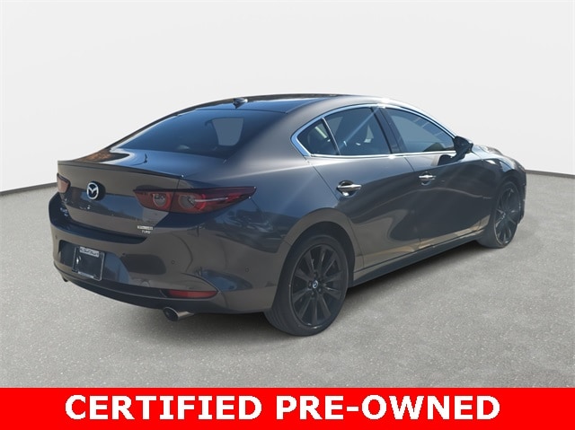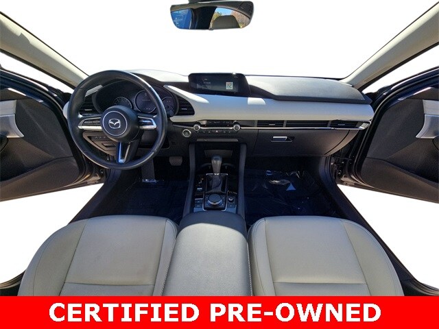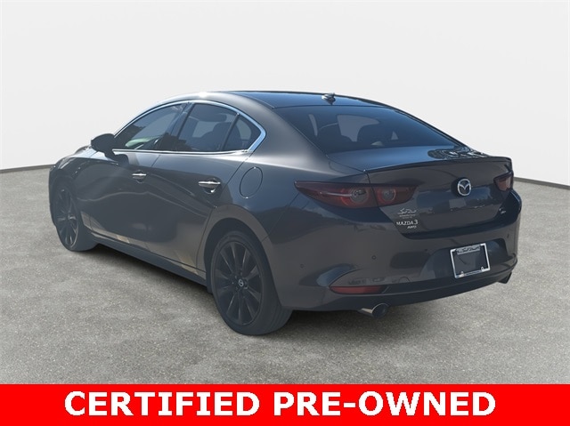 *MAZDA CERTIFIED*, *INCLUDES WARRANTY*, *BACKUP CAMERA*, *BLUETOOTH*, *NAVIGATION*, *APPLE CARPLAY/ANDROID AUTO*, *ALUMINUM ALLOY WHEELS*, Mazda3 Premium Plus AWD, 4D Sedan, I4, 6-Speed Automatic, AWD, Machine Gray Metallic, White w/Leather Seat Trim, 4-Wheel Disc Brakes, ABS brakes, Air Conditioning, Alloy wheels, AppLink/Apple CarPlay and Android Auto, Front Bucket Seats, Heads-Up Display, Heated front seats, Heated Front Sport Seats, Heated steering wheel, Leather Seat Trim, Memory seat, Navigation System, Panic alarm, Power driver seat, Power moonroof, Power windows, Premium Plus Package, Remote keyless entry, Speed control, Split folding rear seat, Spoiler, Steering wheel mounted audio controls, Telescoping steering wheel, Tilt steering wheel, Traction control, Wheels: 18" x 7J Black Finish Alloy.