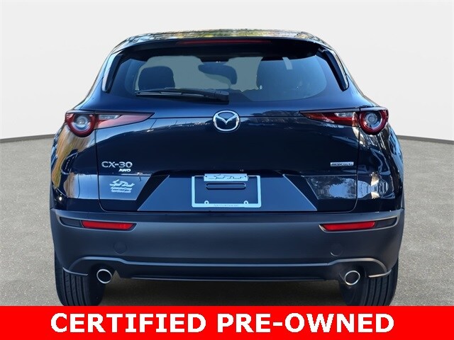 *MAZDA CERTIFIED*, *REMAINDER OF FACTORY WARRANTY*, *INCLUDES WARRANTY*, *CLEAN HISTORY...NO ACCIDENTS REPORTED*, *ONE OWNER...NO ACCIDENTS REPORTED*, *ONE OWNER*, *BOUGHT HERE NEW*, *RECENT TRADE IN*, *BACKUP CAMERA*, *BLUETOOTH*, *APPLE CARPLAY/ANDROID AUTO*, *ALUMINUM ALLOY WHEELS*, CX-30 2.5 S AWD, 4D Sport Utility, SKYACTIV® 2.5L 4-Cylinder DOHC 16V, 6-Speed Automatic, AWD, Deep Crystal Blue Mica, Black w/Cloth Seat Trim, 4-Wheel Disc Brakes, ABS brakes, Air Conditioning, Alloy wheels, AppLink/Apple CarPlay and Android Auto, Cloth Seat Trim, Emergency communication system: Mazda Connected Services (3-year complimentary trial included), Exterior Parking Camera Rear, Front Bucket Seats, MAZDA CONNECT Infotainment System, Power windows, Remote keyless entry, Speed control, Split folding rear seat, Spoiler, Steering wheel mounted audio controls, Telescoping steering wheel, Tilt steering wheel, Traction control.