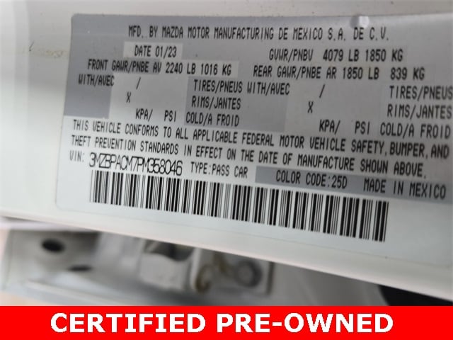 Clean CARFAX. CARFAX One-Owner. 2023 Mazda Mazda3 2.5 S Preferred Package 4 DOOR SEDAN Snowflake White Pearl Mica FWD 6-Speed Automatic 2.5L I4 DOHC 16V LEV3-SULEV30 191hp