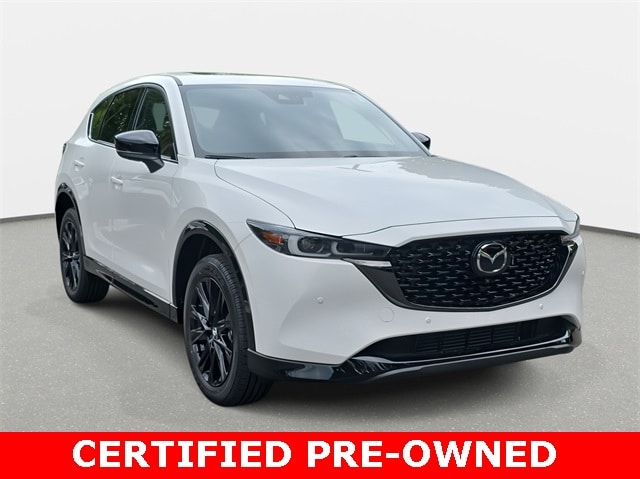 Come See This 2025 Rhodium White Metallic Mazda CX-5 2.5 Carbon Turbo AWD AWD and many more at Sport Durst Automotive today!
