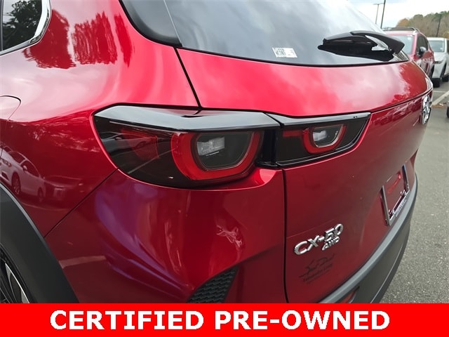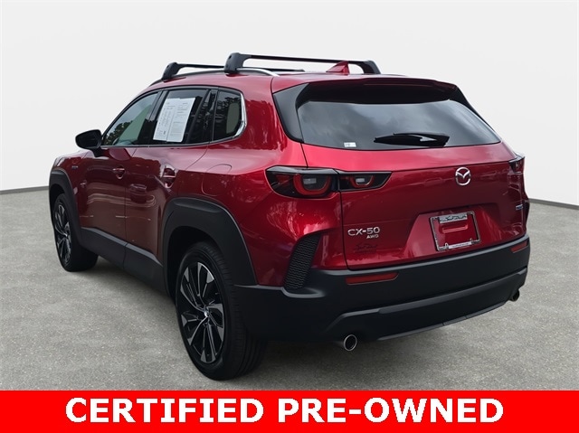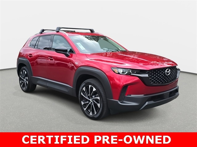 *MAZDA CERTIFIED*, CX-50 Hybrid Premium Plus, 4D Sport Utility, 2.5L 4-Cylinder, eCVT, AWD, Soul Red Crystal Metallic, Black w/Brown, Air Conditioning, All-Weather Floor Mats, Alloy wheels, Cargo Liner with Seatback Protection, Exterior Parking Camera Rear, Front Bucket Seats, Heads-Up Display, Heated front seats, Leather Seat Trim, Leather Shift Knob, Leather steering wheel, Memory seat, Power driver seat, Power Liftgate, Power passenger seat, Power windows, Remote keyless entry, Roadside Assistance Kit, Split folding rear seat, Steering wheel mounted audio controls, Ventilated front seats, Weather Package.