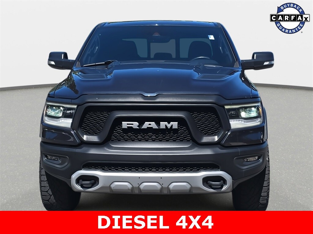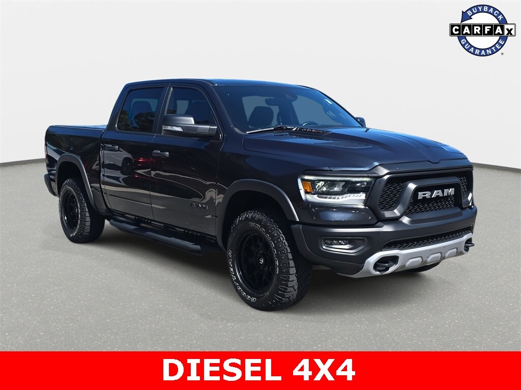 2021 Ram 1500 Rebel 4WD Maximum Steel Metallic Clearcoat 4WD 8-Speed Automatic EcoDiesel 3.0L V6 *LOCAL TRADE*, *INCLUDES WARRANTY*, *BACKUP CAMERA*, *BLUETOOTH*, *APPLE CARPLAY/ANDROID AUTO*, *POWER PACKAGE*, 1500 Rebel 4WD, 4D Crew Cab, EcoDiesel 3.0L V6, 8-Speed Automatic, 4WD, Maximum Steel Metallic Clearcoat, Black w/Deluxe Cloth Bucket Seats or Premium Cloth/Vinyl Bench Seat or Premium Cloth/Vinyl Bucket Seats, 3.92 Rear Axle Ratio, 4-Wheel Disc Brakes, 6 Speakers, ABS brakes, Air Conditioning, Alloy wheels, Auto-Dimming Exterior Driver Mirror, Black Premium Power Mirrors, Bucket Seats, Cloth/Vinyl Low Back Bucket Seats, Compass, Exterior Mirrors Courtesy Lamps, Exterior Mirrors w/Supplemental Signals, Foam Bottle Insert (Door Trim Panel), Front Bucket Seats, Heated Front Seats, Heated Steering Wheel, Leather steering wheel, Panic alarm, ParkView Rear Back-Up Camera, Power Adjustable Pedals, Power-Folding Mirrors, Quick Order Package 28W Rebel, Rear Dome w/On/Off Switch Lamp, Rear Window Defroster, Rebel Level 1 Equipment Group, Speed control, Sun Visors w/Illuminated Vanity Mirrors, Telescoping steering wheel, Tilt steering wheel, Traction control, Trailer Brake Control, Universal Garage Door Opener.