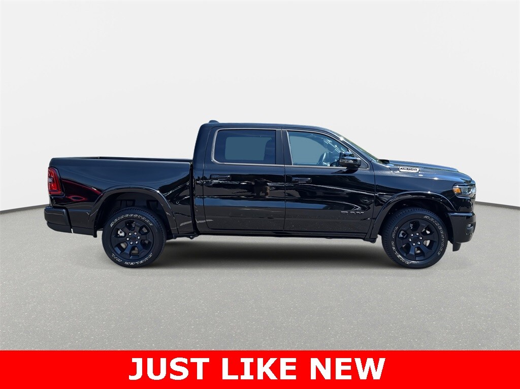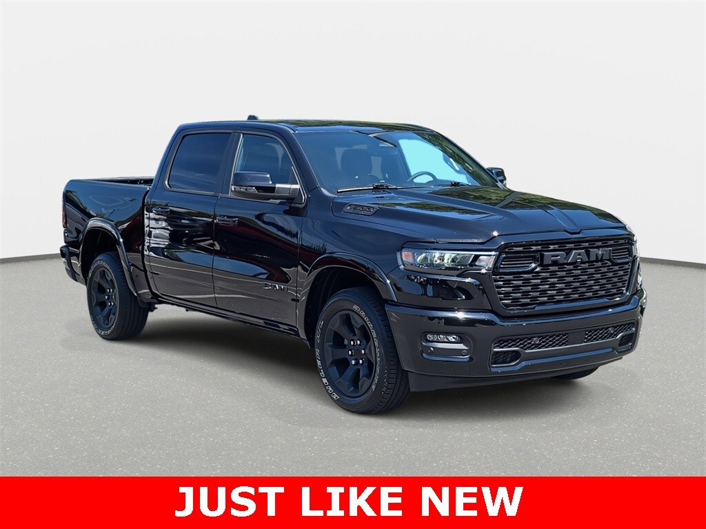 CARFAX One-Owner. Clean CARFAX. 2025 Ram 1500 Big Horn/Lone Star 4WD Diamond Black Crystal Pearlcoat 4WD 8-Speed Automatic 3.0L I6 *REMAINDER OF FACTORY WARRANTY*, *INCLUDES WARRANTY*, *CLEAN HISTORY...NO ACCIDENTS REPORTED*, *ONE OWNER...NO ACCIDENTS REPORTED*, *ONE OWNER*, *BACKUP CAMERA*, *BLUETOOTH*, *APPLE CARPLAY/ANDROID AUTO*, *ALUMINUM ALLOY WHEELS*, *HEATED SEATS*, *POWER PACKAGE*, 1500 Big Horn/Lone Star 4WD, 4D Crew Cab, 3.0L I6, 8-Speed Automatic, 4WD, Diamond Black Crystal Pearlcoat, Black w/Cloth High-Back Bucket Seats, 115V Auxiliary Power Outlet, 115V Auxiliary Rear Power Outlet, 12" Touchscreen Display, 2nd Row In Floor Storage Bins, 4-Wheel Disc Brakes, 400W Inverter, 4G LTE Wi-Fi Hot Spot, 9 Amplified Speakers w/Subwoofer, ABS brakes, Accent Color Door Handles, Accent Color Premium Power Mirrors, Accent Color Tailgate Handle, Air Conditioning, Air Conditioning ATC w/Dual Zone Control, Anti-Spin Differential Rear Axle, Apple CarPlay, Apple CarPlay/Android Auto, Auto Power-Folding Mirrors, Auto-Dimming Exterior Driver Mirror, Auto-Dimming Rear-View Mirror, Big Horn Level 2 Equipment Group, Black Exterior Mirrors, Black Exterior Truck Badging, Black Headlamp Bezels, Black Interior Accents, Black Painted Exterior Mirrors Caps, Black Premium Power Mirrors, Black Tail Lamp Bezels, Body Color Front Bumper, Body Color Rear Bumper w/Step Pads, Bucket Seats, Cloth Bench Seat, Cluster 7.0" TFT Color Display, Configurable Drive Mode, Connected Travel & Traffic Services, Connectivity - US/Canada, Convex Wide-Angle Exterior Mirror Insert, Deluxe Cloth Bucket Seats, Exterior Mirrors Courtesy Lamps, Exterior Mirrors w/Heating Element, Exterior Mirrors w/Supplemental Signals, Glove Box Lamp, Google Android Auto, GPS Antenna Input, GPS Navigation, Grille Black Surround Black Mesh, HD Radio, Heated Front Seats, Heated Steering Wheel, Integrated Voice Command w/Bluetooth, Leather Wrapped Steering Wheel, LED Dome Lamp w/On/Off Switch, LED Footwell Lighting, Media Hub w/2 Charge Only USBs, Night Edition, Overhead LED Lamps, ParkView Rear Back-Up Camera, Power 2-Way Driver Lumbar Adjust, Power Adjust 8-Way Driver Seat, Power Adjustable Pedals, Power windows, Premium Overhead Console, Quick Order Package 21Z Big Horn, Radio: Uconnect 5 Nav w/12.0" Display, RAM Grille Badge - Black, Rear Power Sliding Window, Rear Window Defroster, Remote keyless entry, Remote Tailgate Release, Security Alarm, SiriusXM w/360L, Steering Wheel Mounted Audio Controls, Sun Visors w/Illuminated Vanity Mirrors, Universal Garage Door Opener, USB Host Flip, Wheels: 20" x 9.0" Aluminum Painted Clad.
