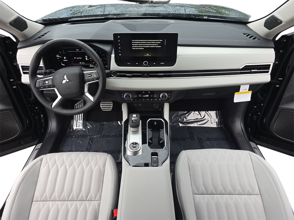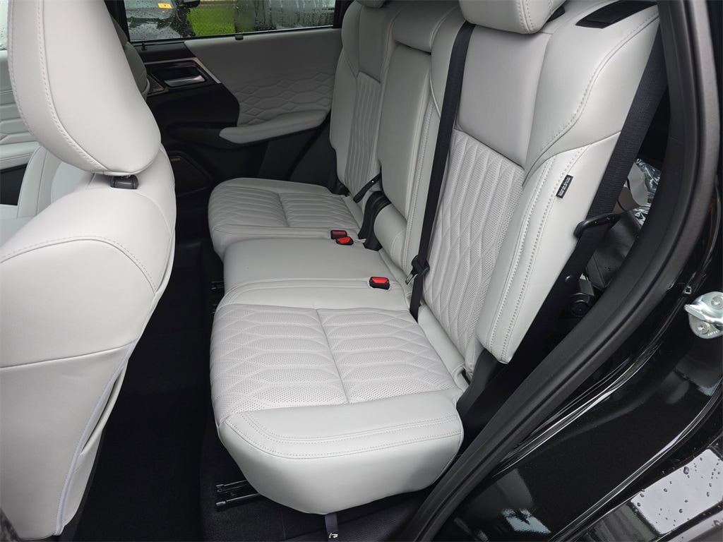 Silver 2025 Mitsubishi Outlander SEL 4WD CVT 2.5L I4 DOHC 16V LEV3-ULEV50 181hp 4WD, ABS brakes, Active Cruise Control, Alloy wheels, Electronic Stability Control, Front dual zone A/C, Heated door mirrors, Heated Front Bucket Seats, Heated front seats, Heated rear seats, Illuminated entry, Low tire pressure warning, Navigation System, Power Liftgate, Remote keyless entry, Traction control.