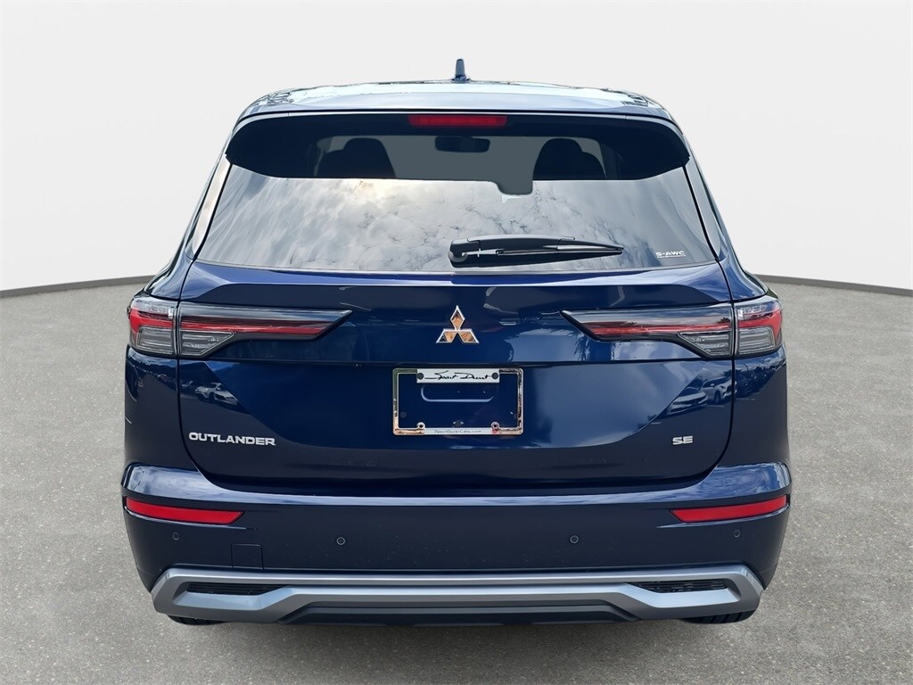 Cosmic Blue 2025 Mitsubishi Outlander SE 4WD CVT 2.5L I4 DOHC 16V LEV3-ULEV50 181hp 4WD, ABS brakes, Active Cruise Control, Alloy wheels, Electronic Stability Control, Front dual zone A/C, Heated door mirrors, Heated Front Bucket Seats, Heated front seats, Illuminated entry, Low tire pressure warning, Navigation System, Power Liftgate, Remote keyless entry, Traction control.