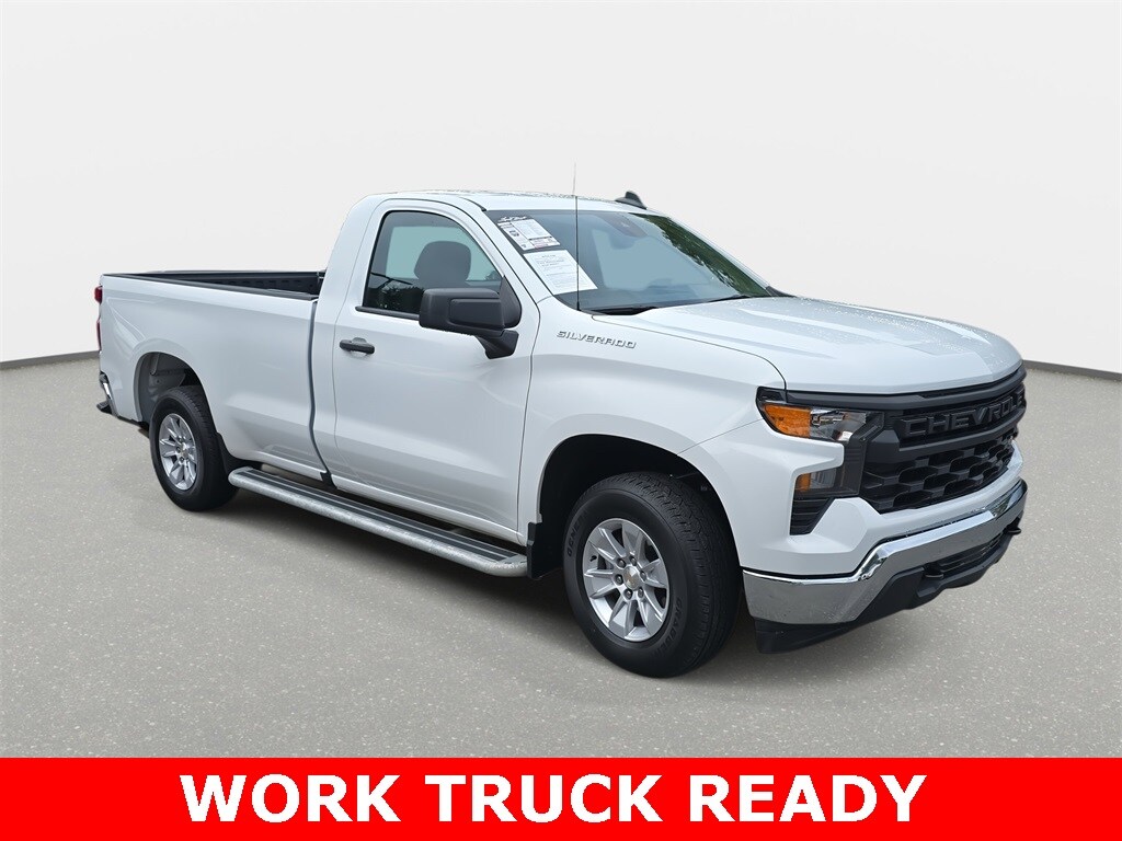CARFAX One-Owner. 2024 Chevrolet Silverado 1500 WT RWD Summit White RWD 10-Speed Automatic EcoTec3 5.3L V8 *REMAINDER OF FACTORY WARRANTY*, *ONE OWNER*, *BACKUP CAMERA*, *BLUETOOTH*, *ALUMINUM ALLOY WHEELS*, *POWER PACKAGE*, Silverado 1500 WT RWD, 2D Standard Cab, EcoTec3 5.3L V8, 10-Speed Automatic, RWD, Summit White, Jet Black w/Cloth Seat Trim, 3.5" Monochromatic Display Driver Info Center, 4-Wheel Disc Brakes, 40/20/40 Front Split Bench Seat, ABS brakes, Air Conditioning, Auxiliary External Transmission Oil Cooler, Black (Semi-Gloss) Front Bumper, Black (Semi-Gloss) Rear Bumper, Bluetooth® For Phone, Electrical Steering Column Lock, Electronic Cruise Control, EZ Lift Power Lock & Release Tailgate, Front Frame-Mounted Black Recovery Hooks, HD Rear Vision Camera, Heated Power-Adjustable Outside Mirrors, Inside Rear-View Mirror w/Tilt, Locking Tailgate, Manual Tailgate Function w/No EZ Lift, Manual Tilt Wheel Steering Column, OnStar & Chevrolet Connected Services Capable, Panic alarm, Power Front Windows w/Driver Express Up/Down, Power Front Windows w/Passenger Express Down, Power windows, Preferred Equipment Group 1WT, Remote Keyless Entry, Rubberized-Vinyl Floor Covering, SiriusXM Delete, Solar Absorbing Tinted Glass, Standard Suspension Package, Standard Tailgate, Traction control, Vinyl Seat Trim, Wheels: 17" x 8" Ultra Silver Painted Steel.