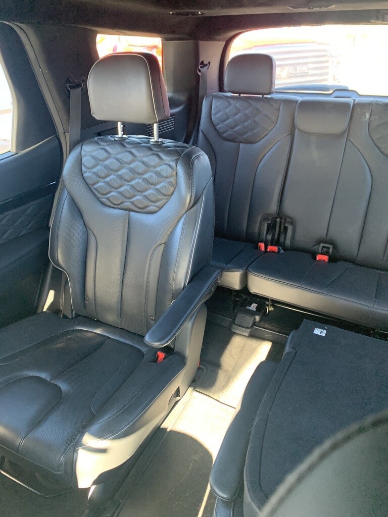 Recent Arrival! 2021 Hyundai Palisade Calligraphy FWD Becketts Black FWD 8-Speed Automatic with SHIFTRONIC V6 *LOCAL TRADE*, *CLEAN HISTORY...NO ACCIDENTS REPORTED*, *BACKUP CAMERA*, *BLUETOOTH*, *SUNROOF*, *THIRD ROW SEATS*, *APPLE CARPLAY/ANDROID AUTO*, *ALUMINUM ALLOY WHEELS*, Palisade Calligraphy FWD, 4D Sport Utility, V6, 8-Speed Automatic with SHIFTRONIC, FWD, Becketts Black, Black w/Premium Nappa Leather Seat Trim, 3rd row seats: split-bench, 4-Wheel Disc Brakes, ABS brakes, Air Conditioning, Alloy wheels, Apple CarPlay & Android Auto, Cargo Block, Cargo Net, Cargo Package, Cargo Tray, Emergency communication system: Blue Link Connected Car Service (3-year complimentary subscription), Front Bucket Seats, Heads-Up Display, Heated & Ventilated Front Bucket Seats, Heated front seats, Heated rear seats, Heated steering wheel, Memory seat, Navigation System, Option Group 01, Power driver seat, Power moonroof, Power passenger seat, Power windows, Premium Nappa Leather Seat Trim, Reclining 3rd row seat, Remote keyless entry, Speed control, Split folding rear seat, Steering wheel mounted audio controls, Telescoping steering wheel, Tilt steering wheel, Ventilated front seats, Ventilated rear seats, Wheels: 20" x 7.5J Calligraphy Exclusive Alloy.