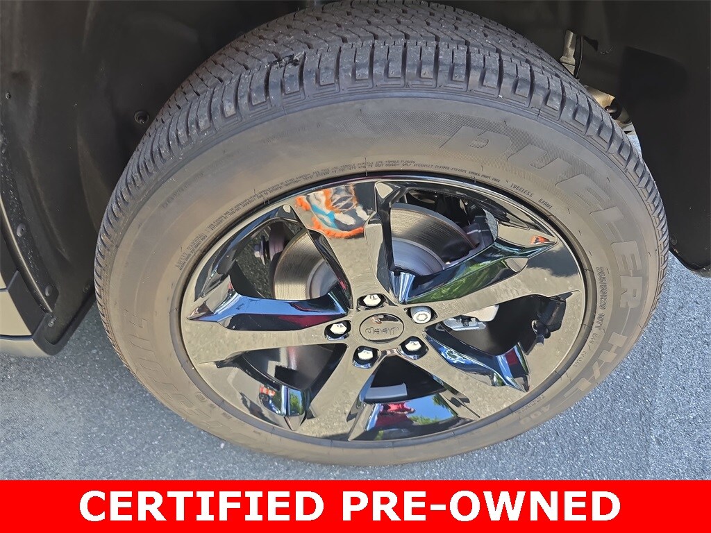 Clean CARFAX. 2023 Jeep Grand Cherokee Altitude RWD Diamond Black Crystal Pearlcoat RWD 8-Speed Automatic 3.6L V6 24V VVT *LOCAL TRADE*, *REMAINDER OF FACTORY WARRANTY*, *INCLUDES WARRANTY*, *CLEAN HISTORY...NO ACCIDENTS REPORTED*, *ONE OWNER...NO ACCIDENTS REPORTED*, *ONE OWNER*, *BOUGHT HERE NEW*, *BACKUP CAMERA*, *APPLE CARPLAY/ANDROID AUTO*, *ALUMINUM ALLOY WHEELS*, *LEATHER*, Grand Cherokee Altitude RWD, 4D Sport Utility, 3.6L V6 24V VVT, 8-Speed Automatic, RWD, Diamond Black Crystal Pearlcoat, Global Black w/Capri Leather/Suede Seats, 115V Auxiliary Power Outlet, Alloy wheels, Altitude Appearance Package, Black Headliner, Capri Leatherette/Suede Seats, Cloth Seats, Delete Laredo Badge, Front Bucket Seats, Gloss Black Exterior Accents, Heated Front Seats, Heated Steering Wheel, Molded In Color Black/Gloss Black Roof Rails, Power Liftgate, Quick Order Package 23B Altitude, Rain Sensitive Windshield Wipers, Remote Start System, Selectable Tire Fill Alert, Split folding rear seat, Wheels: 17" x 6.5" Fully Painted Aluminum, Wheels: 18" x 8" Fully Painted Aluminum 1, Wireless Charging Pad.