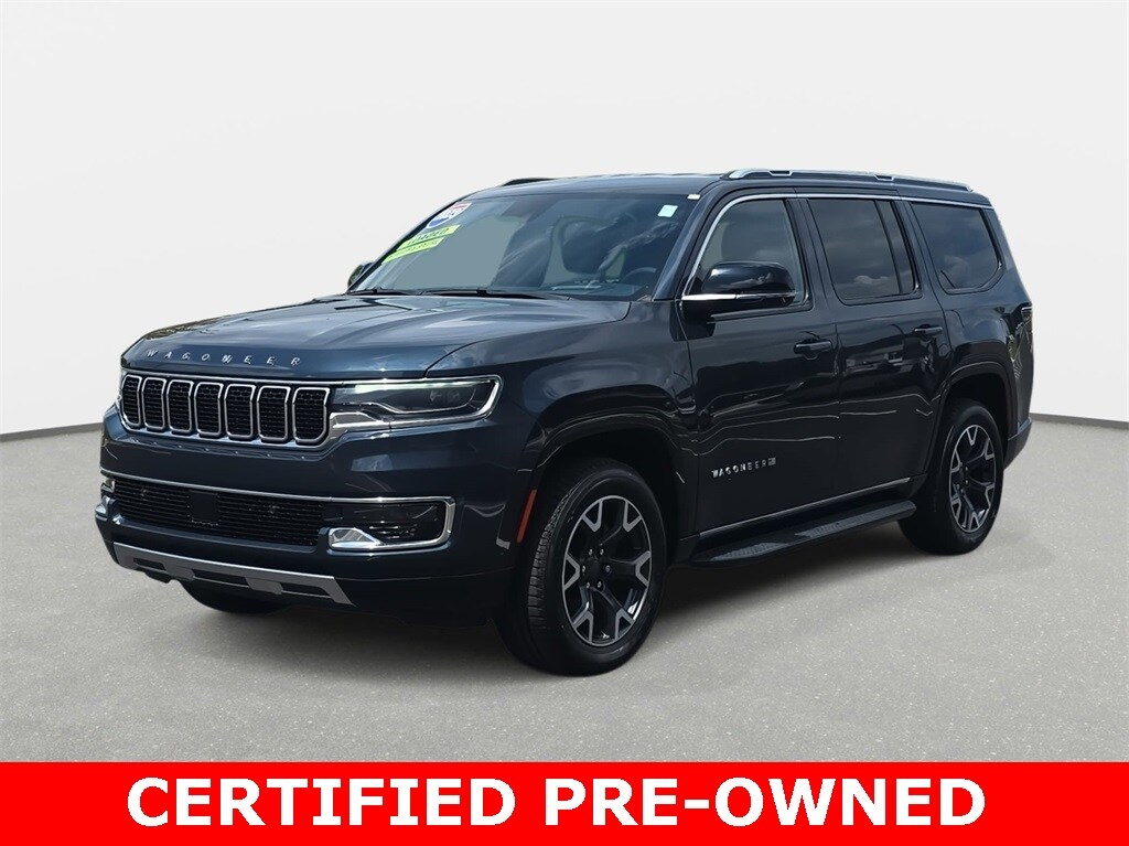 CARFAX One-Owner. 2023 Jeep Wagoneer Series III RWD River Rock RWD 8-Speed Automatic 3.0L I6 *LOCAL TRADE*, *REMAINDER OF FACTORY WARRANTY*, *INCLUDES WARRANTY*, *CLEAN HISTORY...NO ACCIDENTS REPORTED*, *ONE OWNER...NO ACCIDENTS REPORTED*, *ONE OWNER*, *BOUGHT HERE NEW*, *BACKUP CAMERA*, *BLUETOOTH*, *NAVIGATION*, *APPLE CARPLAY/ANDROID AUTO*, *ALUMINUM ALLOY WHEELS*, *POWER PACKAGE*, Wagoneer Series III RWD, 4D Sport Utility, 3.0L I6, 8-Speed Automatic, RWD, River Rock, Global Black w/Leather Trimmed Bucket Seats, 20" x 9.0" Aluminum Wheels, 3rd row seats: bench, 4-Wheel Disc Brakes, 60/40 Power Recline 3rd Row Seat, ABS brakes, Air Conditioning, Alloy wheels, Emergency communication system: Automatic SOS Call, Exterior Parking Camera Rear, Front Bucket Seats, Heads-Up Display, Heated front seats, Heated rear seats, Leather Trimmed Bucket Seats, Memory seat, Navigation System, Pedal memory, Power driver seat, Power Liftgate, Power windows, Preferred Equipment Group, Quick Order Package 25N, Reclining 3rd row seat, Remote keyless entry, Split folding rear seat, Steering wheel memory, Steering wheel mounted audio controls, Traction control, Ventilated front seats.