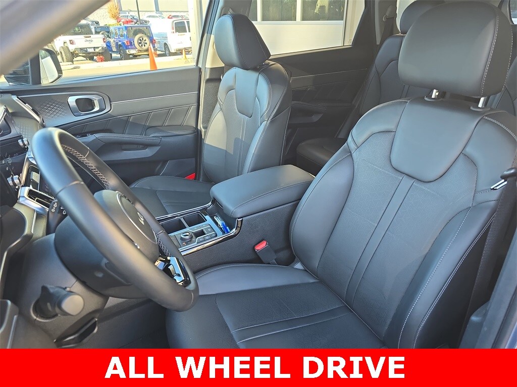 2023 Kia Sorento SX AWD Everlasting Silver AWD 8-Speed DCT 2.5L I4 DGI Turbocharged DOHC 16V LEV3-ULEV70 281hp *LOCAL TRADE*, *REMAINDER OF FACTORY WARRANTY*, *CLEAN HISTORY...NO ACCIDENTS REPORTED*, *ONE OWNER...NO ACCIDENTS REPORTED*, *ONE OWNER*, *BACKUP CAMERA*, *BLUETOOTH*, *THIRD ROW SEATS*, *APPLE CARPLAY/ANDROID AUTO*, *ALUMINUM ALLOY WHEELS*, Sorento SX AWD, 4D Sport Utility, 2.5L I4 DGI Turbocharged DOHC 16V LEV3-ULEV70 281hp, 8-Speed DCT, AWD, Everlasting Silver, Black w/SynTex Artificial Leather Seat Trim, 3rd row seats: split-bench, Air Conditioning, Apple CarPlay & Android Auto, Exterior Parking Camera Rear, Front Bucket Seats, Heated Front Bucket Seats, Heated front seats, Navigation System, Power driver seat, Power passenger seat, Power windows, Split folding rear seat, SynTex Artificial Leather Seat Trim.