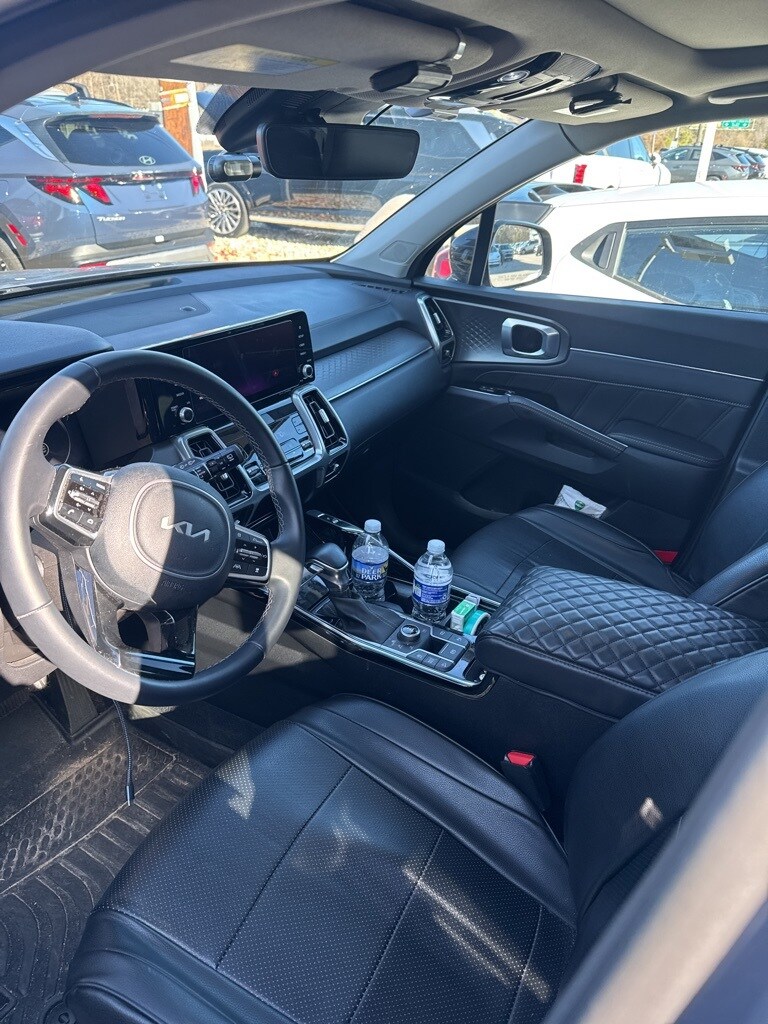 Recent Arrival! 2023 Kia Sorento SX AWD Everlasting Silver AWD 8-Speed DCT 2.5L I4 DGI Turbocharged DOHC 16V LEV3-ULEV70 281hp *LOCAL TRADE*, *REMAINDER OF FACTORY WARRANTY*, *CLEAN HISTORY...NO ACCIDENTS REPORTED*, *ONE OWNER...NO ACCIDENTS REPORTED*, *ONE OWNER*, *BACKUP CAMERA*, *BLUETOOTH*, *THIRD ROW SEATS*, *APPLE CARPLAY/ANDROID AUTO*, *ALUMINUM ALLOY WHEELS*, Sorento SX AWD, 4D Sport Utility, 2.5L I4 DGI Turbocharged DOHC 16V LEV3-ULEV70 281hp, 8-Speed DCT, AWD, Everlasting Silver, Black w/SynTex Artificial Leather Seat Trim, 3rd row seats: split-bench, Air Conditioning, Apple CarPlay & Android Auto, Exterior Parking Camera Rear, Front Bucket Seats, Heated Front Bucket Seats, Heated front seats, Navigation System, Power driver seat, Power passenger seat, Power windows, Split folding rear seat, SynTex Artificial Leather Seat Trim.