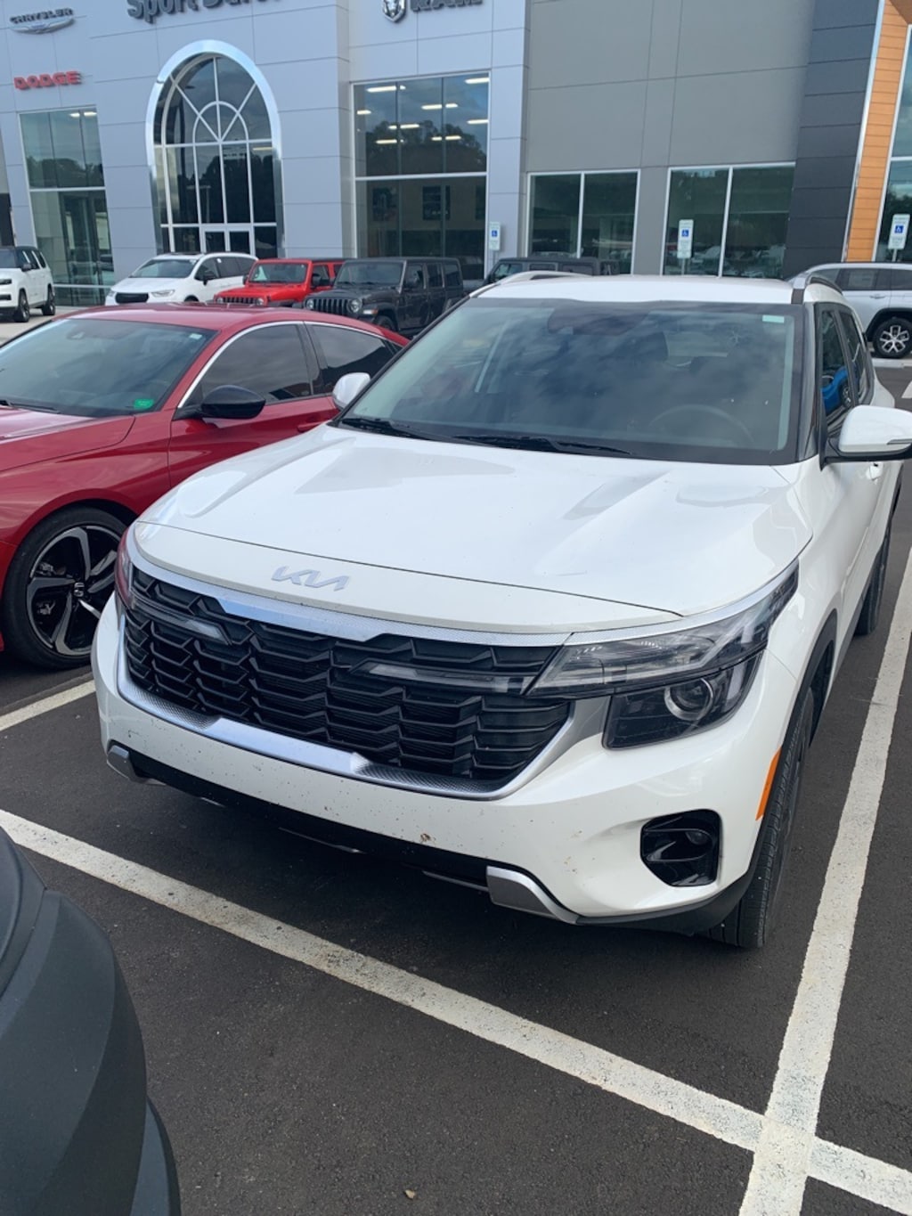 Come See This 2025 Snow White Pearl Kia Seltos S AWD AWD and many more at Sport Durst Automotive today!
