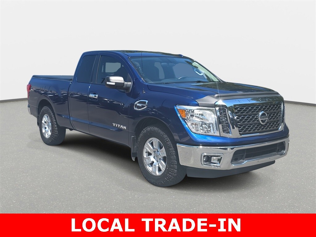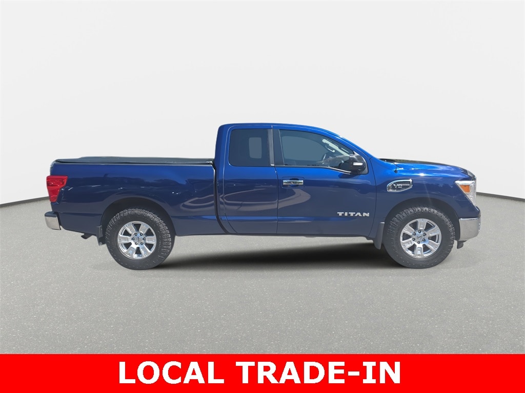 Clean CARFAX. 2017 Nissan Titan SV RWD Deep Blue Pearl RWD 7-Speed Automatic 5.6L V8 *LOCAL TRADE*, *CLEAN HISTORY...NO ACCIDENTS REPORTED*, *BACKUP CAMERA*, *BLUETOOTH*, *ALUMINUM ALLOY WHEELS*, *TRAILER HITCH*, Titan SV RWD, King Cab, 5.6L V8, 7-Speed Automatic, RWD, Deep Blue Pearl, Black w/Cloth Seat Trim, 4-Wheel Disc Brakes, ABS brakes, Air Conditioning, Alloy wheels, CD player, Panic alarm, Power windows, Radio: NissanConnect w/SiriusXM & Mobile Apps, Remote keyless entry, Security system, Speed control, Split folding rear seat, Steering wheel mounted audio controls, Tilt steering wheel, Traction control, Wheels: 18" x 8" Silver Painted Alloy.