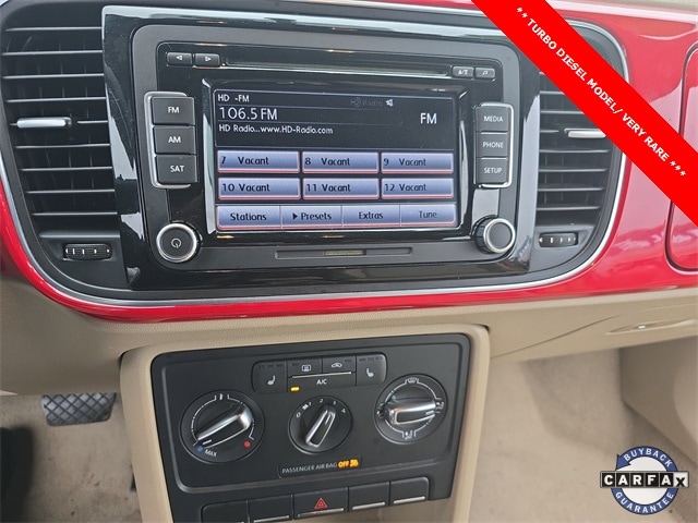 2013 Volkswagen Beetle 2.0 TDI Tornado Red FWD 6-Speed Automatic DSG 2.0L TDI Turbodiesel 140 hp *ALUMINUM ALLOY WHEELS*, Beige Premium Synthetic, ABS brakes, Radio: Premium VIII AM/FM Sound System w/8-Speakers, Security system, Steering wheel mounted audio controls, Wheels: 17" x 7J TDI Aluminum Alloy.