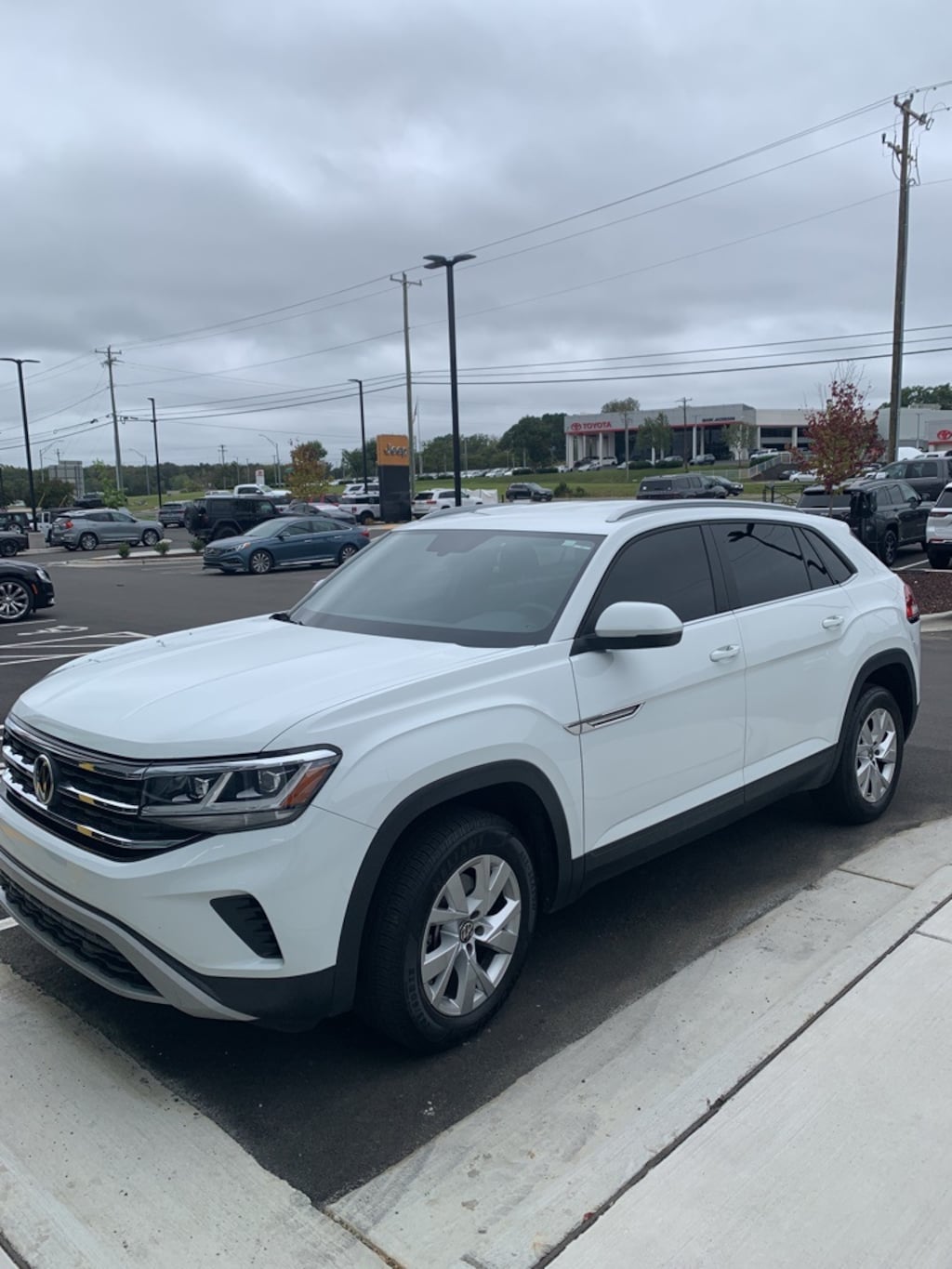 Come See This 2021 Pure White Volkswagen Atlas Cross Sport 2.0T S FWD FWD and many more at Sport Durst Automotive today!
